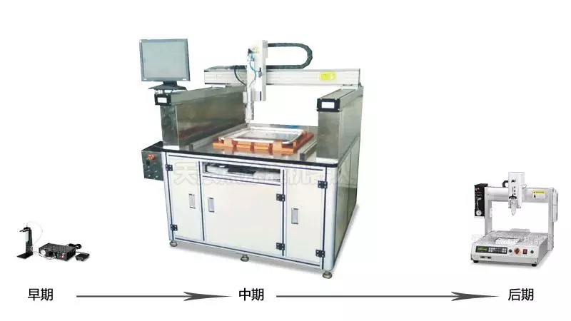 最早期的點(diǎn)膠機(jī),只是一個(gè)控制流體出膠量的控制系統(tǒng)。后來(lái)發(fā)現(xiàn)人工手持這種設(shè)備,雖然出膠量可以控制了,但出膠沒有一致性,而且還不美觀。人工要達(dá)到這一效果,要經(jīng)歷很長(zhǎng)一段時(shí)間的磨練,這對(duì)生產(chǎn)無(wú)疑是不利的一面。經(jīng)過研發(fā)人員不斷的摸索與研究,開發(fā)出控膠系統(tǒng)與自動(dòng)化設(shè)備相結(jié)合的新型設(shè)備。在早期這種設(shè)備的外形還很龐大,得不到有效的推廣,原因有很多,第一,他的造價(jià)很高;第二,外形太大,不好移動(dòng);第三,開發(fā)機(jī)器的周期較長(zhǎng)。為了再次適應(yīng)市場(chǎng)需求,又繼續(xù)研發(fā),千錘百煉之后,就得到了我們目前市場(chǎng)上的標(biāo)準(zhǔn)點(diǎn)膠機(jī)了,機(jī)形小巧,功能靈活搭載,造價(jià)相比之前降低了很多。