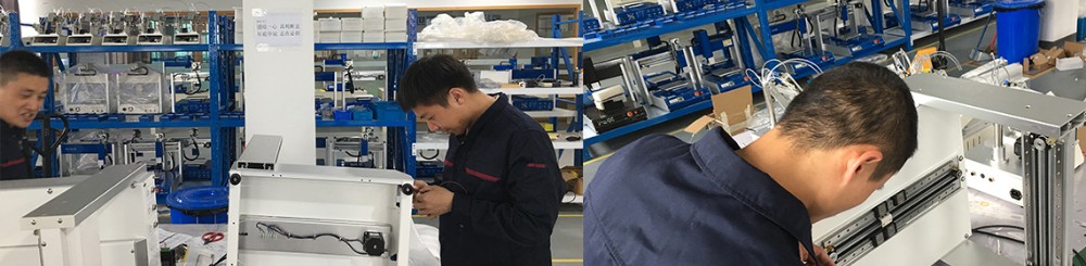 每臺點膠機器人的產(chǎn)出必須經(jīng)歷110道的生產(chǎn)工序和74道的檢測工序后才會送至備貨倉庫中,以保證機器可靠的質(zhì)量和完善的功能。