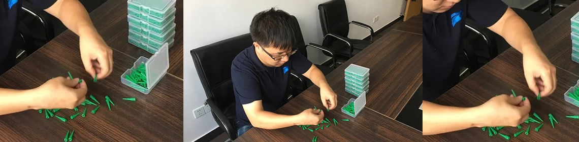 在接收到客戶樣品要求免費點樣時,應(yīng)用工程和業(yè)務(wù)員會進行深入探討,完全了解客戶要求后再選擇合適的設(shè)備在最有效的時間及時完成試樣, 讓客戶在最短的時間可以看到點膠試樣效果,幫助客戶爭取到訂單, 而且此時業(yè)務(wù)員會時常與客戶在線溝通向客戶及時反饋試樣的過程,那怕是幾毫克的誤差和接點,都會重新打樣,仿佛就是客戶的化身,嚴(yán)謹(jǐn)而又嚴(yán)格!