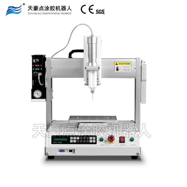 機(jī)器搭載50ml針筒式雙組份膠專用精密膠量控膠系統(tǒng),一般適用于固定體積比例1:1,2:1,4:1,10:1的50ml針筒式包裝的AB雙液膠的產(chǎn)品點(diǎn)涂膠,其可代替人工在各種平面或曲面的產(chǎn)品上進(jìn)行高精度微量的雙液快速打點(diǎn)、畫(huà)線、畫(huà)圓等自動(dòng)點(diǎn)涂膠作業(yè)。